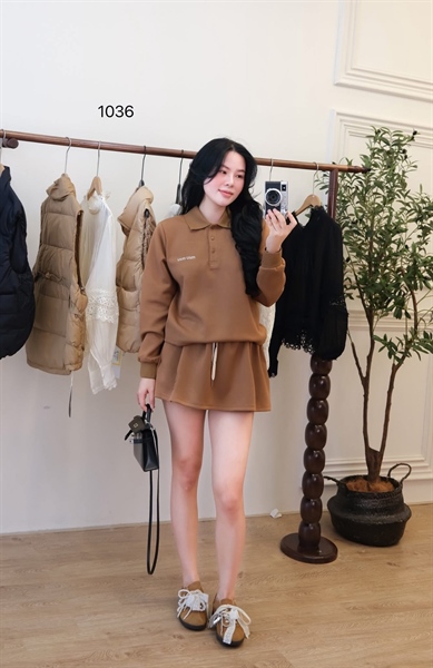 Set Miumiu dài tay cv ngắn ( NÂU ) 1036